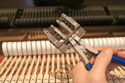 Entdecken Sie neue Möglichkeiten der Intonation. Die PIANOVUM Intonierzange bietet die Möglichkeit, das dynamische Potential eines Hammerkopfsatzes voll auszureizen.